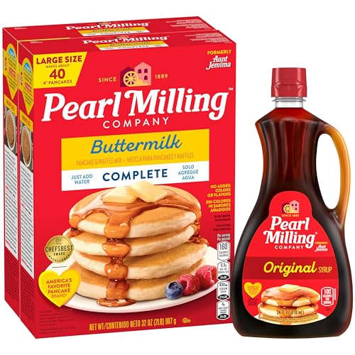 • A linha de produtos da Pearl Milling Company inclui misturas de panqueca/waffle nos formatos “Original”, “Complete”, “Buttermilk”, “Whole Wheat” etc. pearlmillingpancakeart.com