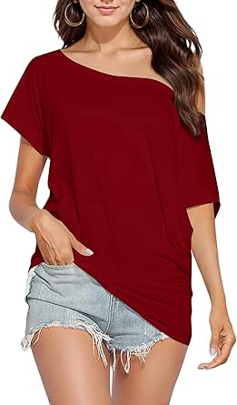 Design Fashion: As blusas de um ombro para mulheres apresentam um corte ombro a ombro para um toque feminino e estilo túnica, valorizando a silhueta. Esta blusa para festas e encontros adiciona um toque sexy, enquanto as mangas curtas garantem versatilidade.
