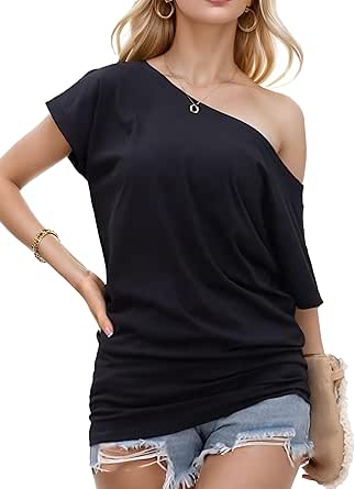 Design Fashion: As blusas de um ombro para mulheres apresentam corte ombro a ombro para um toque feminino e estilo túnica para uma silhueta elegante. Esta blusa para festas ou encontros adiciona um toque sexy, enquanto as mangas curtas garantem versatilidade.